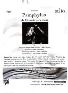 Pamphylus, commedia elegiaca del XIII secolo di Riccardo da Venosa, torna in scena dopo secoli di oblio in una rilettura di forte attualità. La vicenda di un amore che si trasforma in violenza indaga senza sconti le implicazioni psicologiche e sociali di una passione che degenera in delirio e malattia. Un testo medievale che, nella messa in scena di Fulvio Ianneo, rivela tutta la sua inquietante contemporaneità.