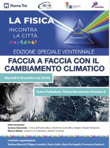 Vent’ anni di “Fisica incontra la Città” | Faccia a faccia con il cambiamento climatico è il ciclo di conferenze porta la scienza fuori dai laboratori per intrecciarla con la vita delle persone, diventando un punto di riferimento per la divulgazione scientifica a Roma. Nel 2025 celebra un traguardo storico: 20 anni di attività. Nato nel 2005 in occasione dell’Anno Mondiale della Fisica, il ciclo “La Fisica incontra la Città” ha ospitato negli anni centinaia di conferenze, spaziando dalla fisica fondamentale all’astrofisica, trattando temi cruciali come energia, intelligenza artificiale e sostenibilità. Grazie a un linguaggio accessibile e coinvolgente, scienziate e scienziati di fama internazionale hanno incontrato studenti, insegnanti e cittadini, rendendo la fisica un patrimonio condiviso.